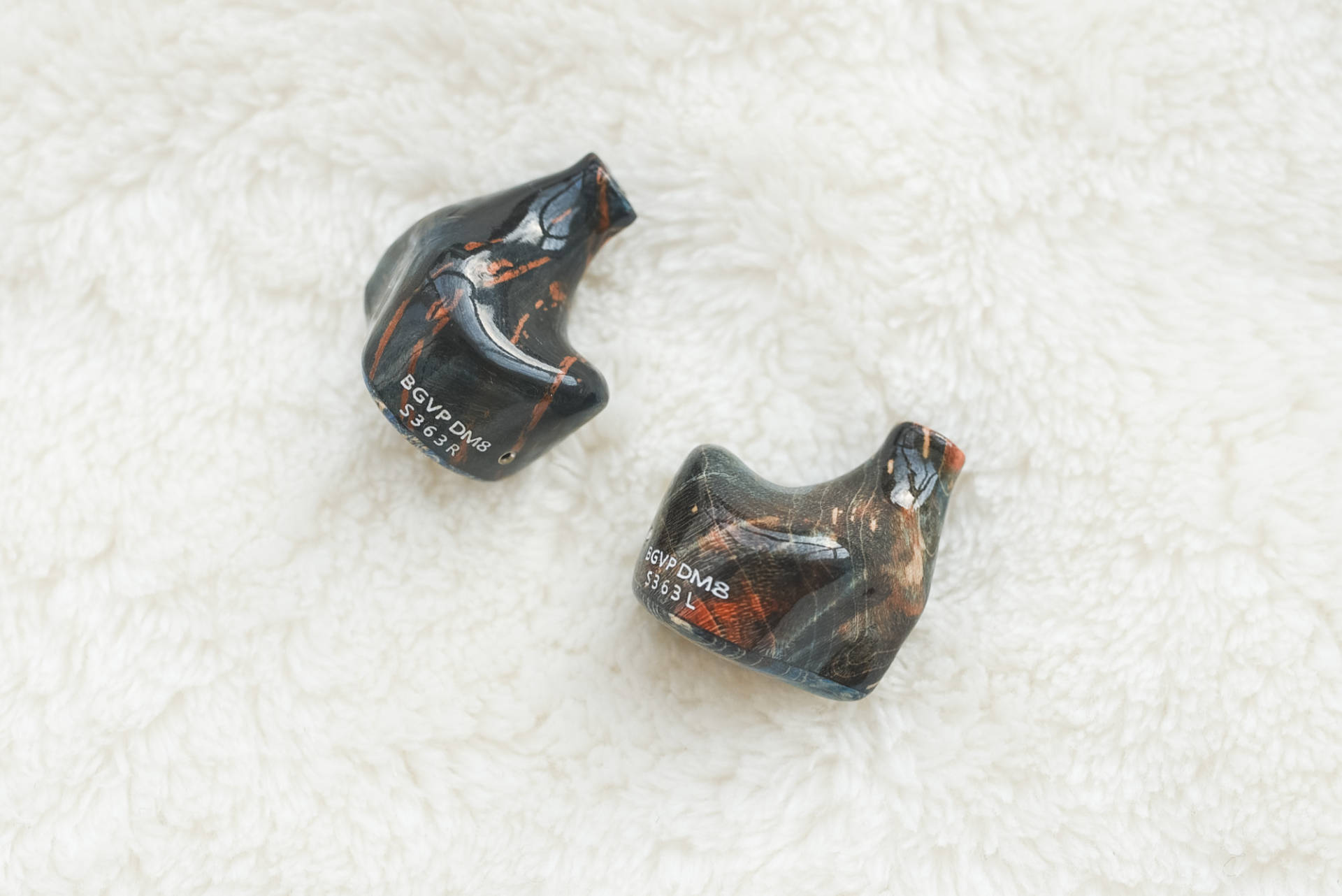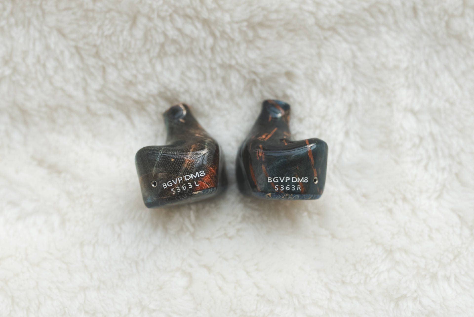 这次BGVP对于3D打印的耳机腔体已经很有经验,所以对于稳定木的使用并没有太大的难度,主要在断层、花色、开孔等细节上的把控,需要多多考验工艺方面的要求。如果不了解材质,那么单独观察DM8甚至感觉其就是像是数码打印出来的“不真实感”。而触摸腔体时,可以明显感受出于与树脂版的一定差别,同样是“滑”,稳定木的“包浆”感受更加明显。所以对于材质上的溢价部分,还是看个人对于样式或颜色的喜好进行选择就好,并不要盲目追求高价。
