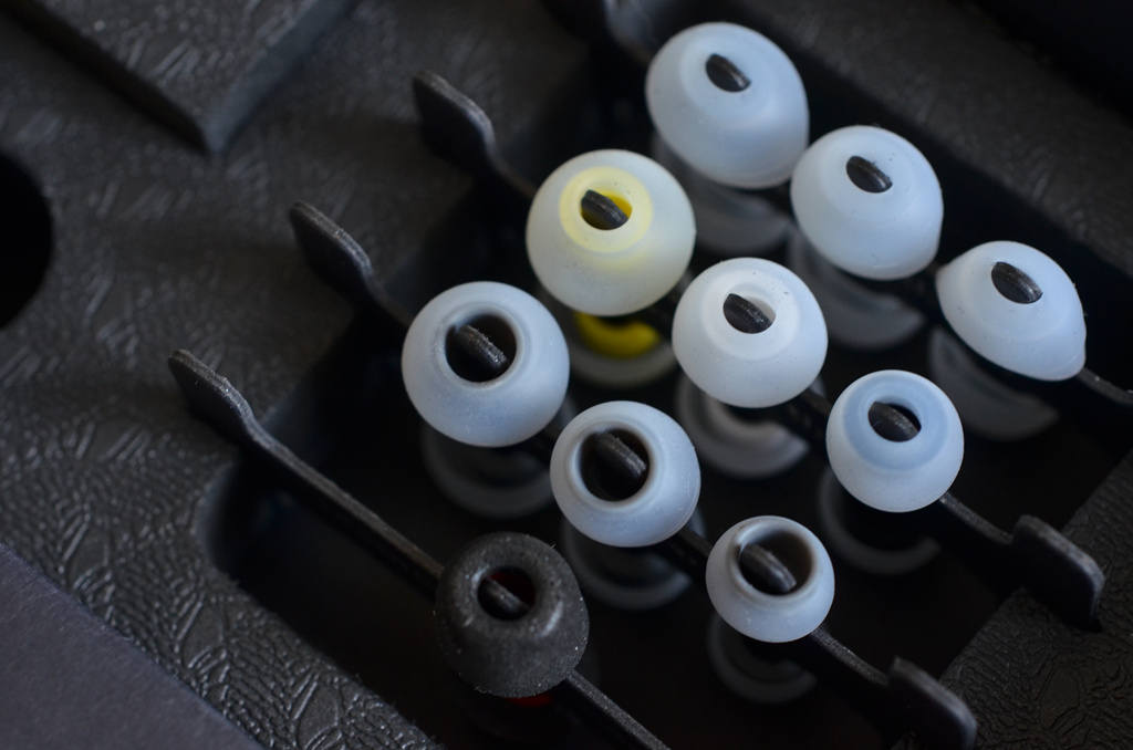 DM8配件的品质也有所提高了,主要表现在这个耳帽上,以前总是送了好几组耳帽,但质感好的耳帽没有几对,DM8的这三组耳帽材质比较柔软,做工也要工整得多没有毛此。这三组耳帽分别是通透、人声、均衡,根据喜好选最适合自己的。