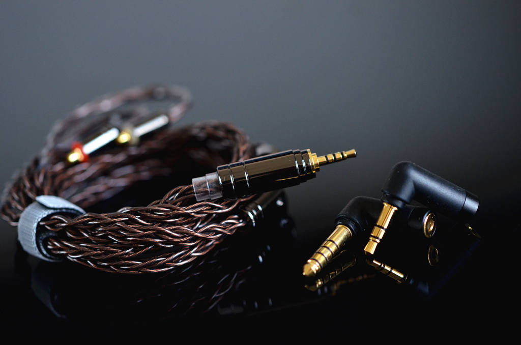 标配的线材采用了冷冻upocc6N8股单晶铜24awg线材,采用咖啡色的线被,外观没有银箔丝线咖啡色+银色混编好看。但质量明显要好一些,特别是插头部分,这个插头的金属保护套很有质感也比较有分量。标配2.5平衡插头,并额外配了2.5平衡转3.5单端和2.5平衡转4.4平衡的转接头,播放器常用的接口都能用。
