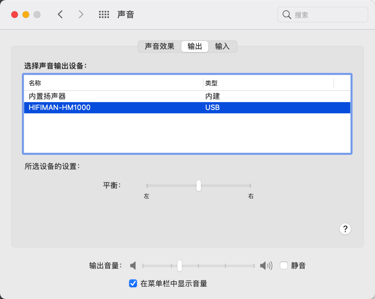另外HM1000还支持USB/OTG DAC,Win10/Mac系统下无需安装驱动,直接在声音选项里将输出换成HM1000就好。