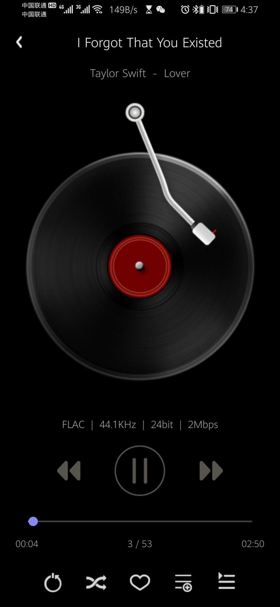 接下来聊聊操控,上文说过HM1000没有屏幕,没有系统,甚至于无法独立使用(需要用手机或电脑连接)。刚刚上手时确实有不习惯,握着手机还总想着用播放器切歌,用一段时间之后,发现手机操作其实高效得多,App用着顺手,搜歌找歌方便,不用掏出播放器就能实现所有操作。