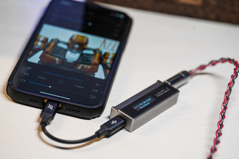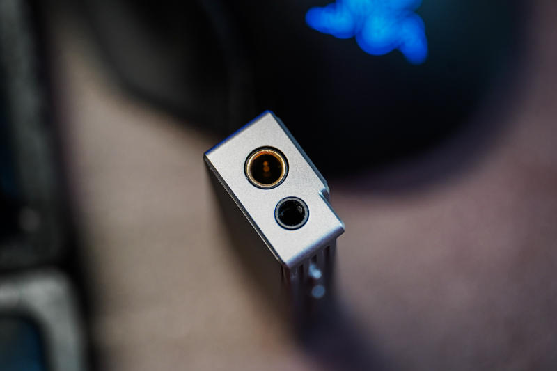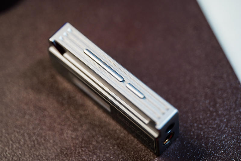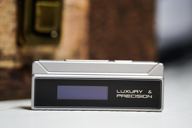 乐彼W1的外观要是拿去跟其他的一堆小尾巴放在一起,绝对算不上轻薄,之所以设计得那么厚实,肯定是有原因的。除了同时搭载了4.4平衡+3.5mm单端(同时带有同轴输出),更重要的 原因是其内部与别家产品大有不同:MCU芯片、USB芯片、FPGA DSP处理、POP声消除芯片、DAC芯片及独立耳放芯片等等,还有那块0.91寸的小型OLED屏幕,要把这么多东西塞进一个小尾巴,不做厚一点难度很大。好在整机重量控制还不错,实测为23g,平时把它挂在手机上并不会造成明显负担。