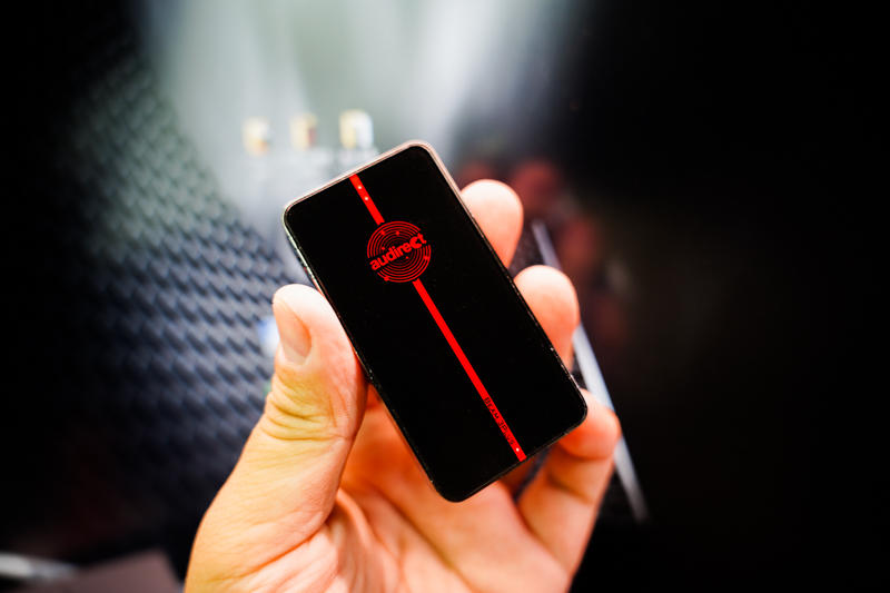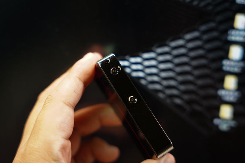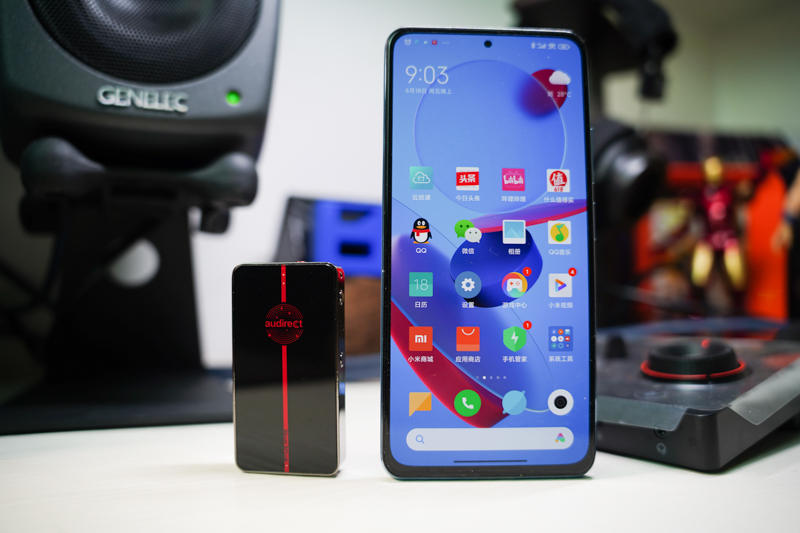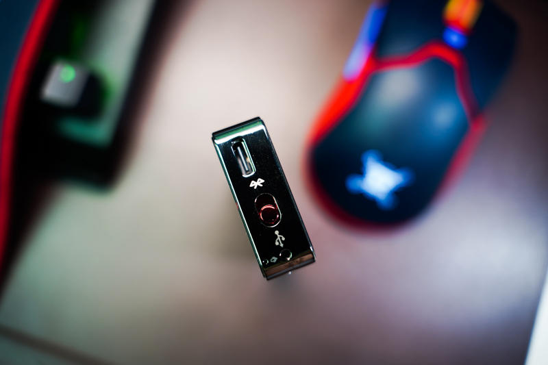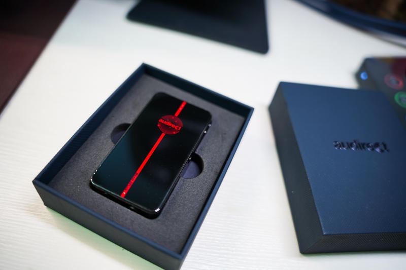 外壳材质上,中框是铜锌合金,正反两面是玻璃。正面的LOGO比较抢眼,有一条红线贯穿其中。另外在这条红线上其实是有3盏小灯的,蓝牙状态、解码状态都比较直观。另外audirect的传统项目:解码不同码率文件会呈现不同的灯光颜色,这一点依然有保留。