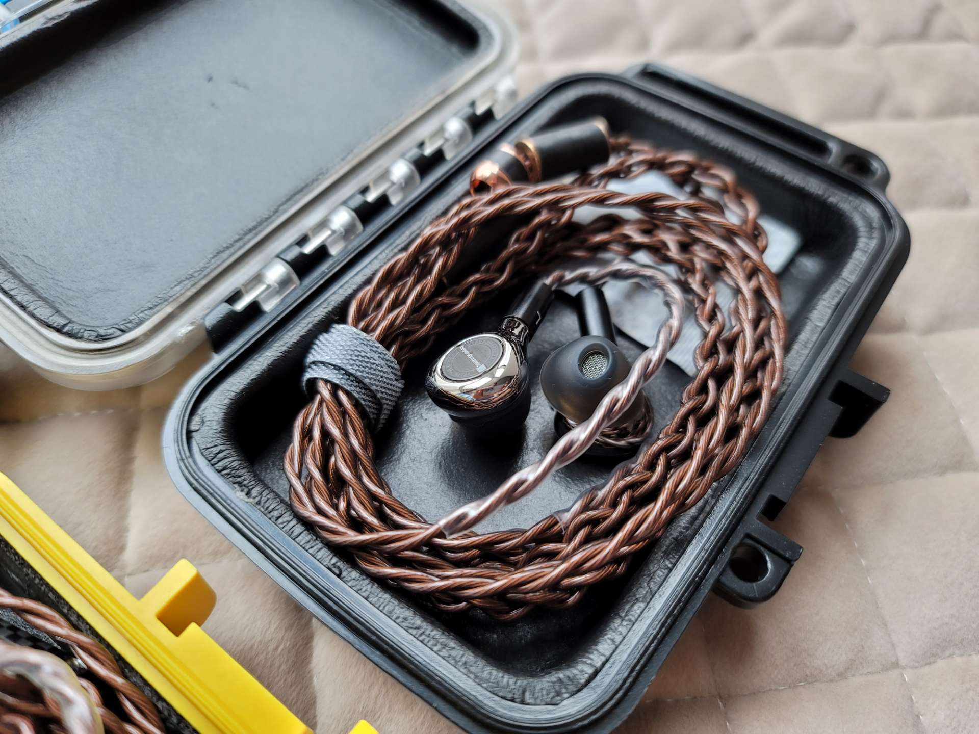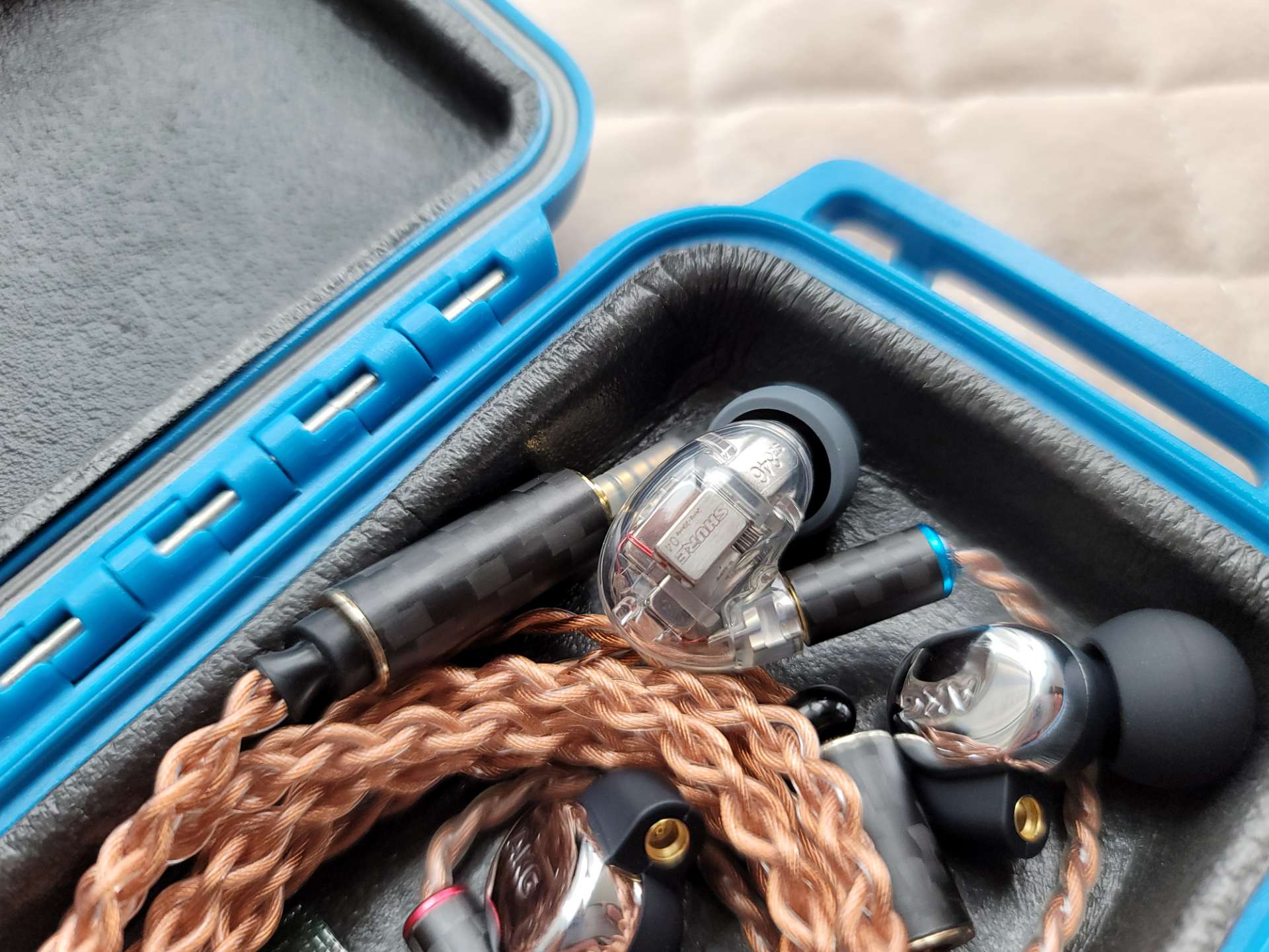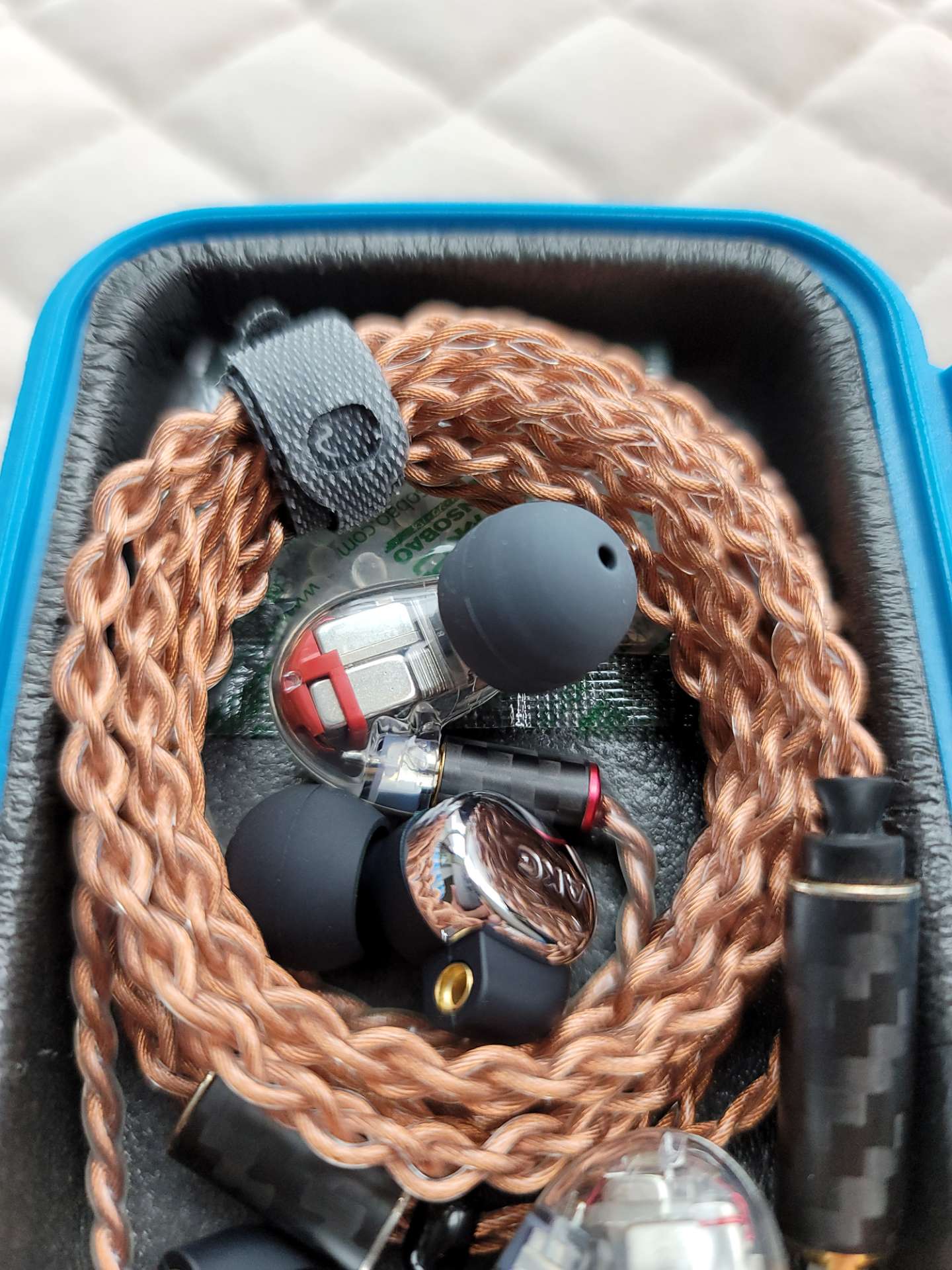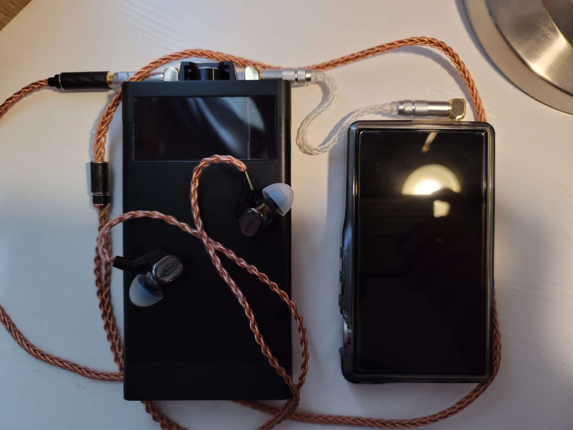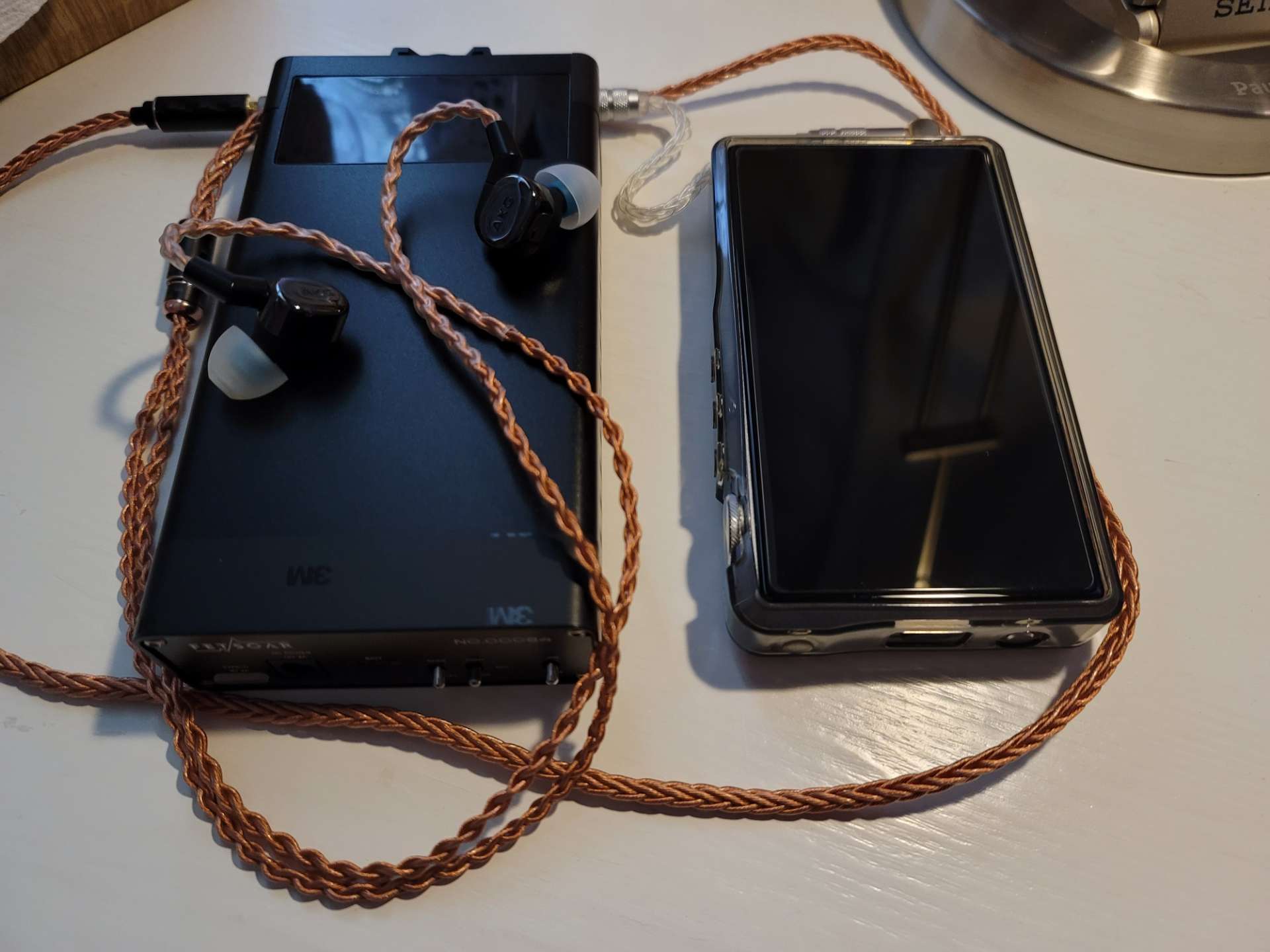 听了快一个月的3003今天收起来了,换上久违的5005,FETSOAR耳放设置成高增益竟然听不到底噪,3003是中增益。5005在哈曼曲线和AKG调音下:耐听,煲开的低频宽松,换线后动态和下潜趋于完美,还是那个女毒小编制塞,听电音泛音十足,香