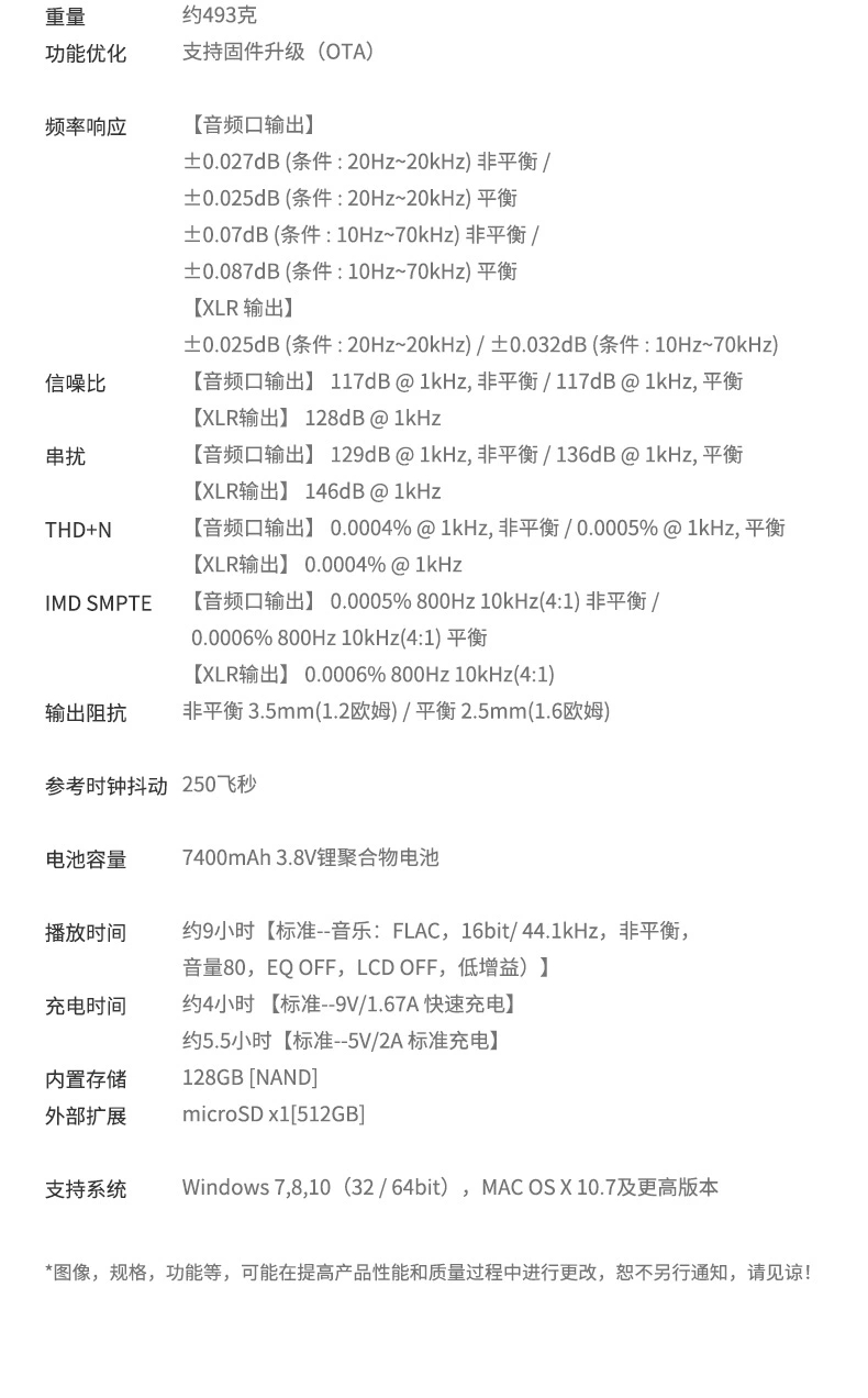 从CUBE上市就种草这英朗霸气的外观了,高增益平衡12Vrms推力感觉挺牛逼,7400mAh电池,两片ESS ES9038PRO SABRE,就当纯解码也值了,净重493克,一斤