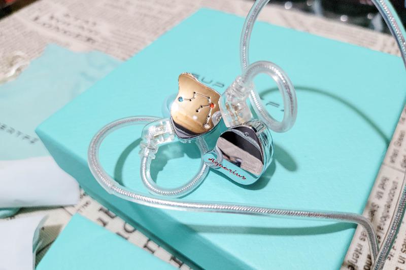 收回发散的思路,聚焦水瓶座 Aquarius耳机本身,面板采用航空级金属铝外壳,坚固耐用的同时,抛光镜面相当养眼,面板设计以logo字样和星图分列左右,星图还做了宝石镶嵌效果处理,实则是动圈耳机的透气孔洞,精美实用了属于是。