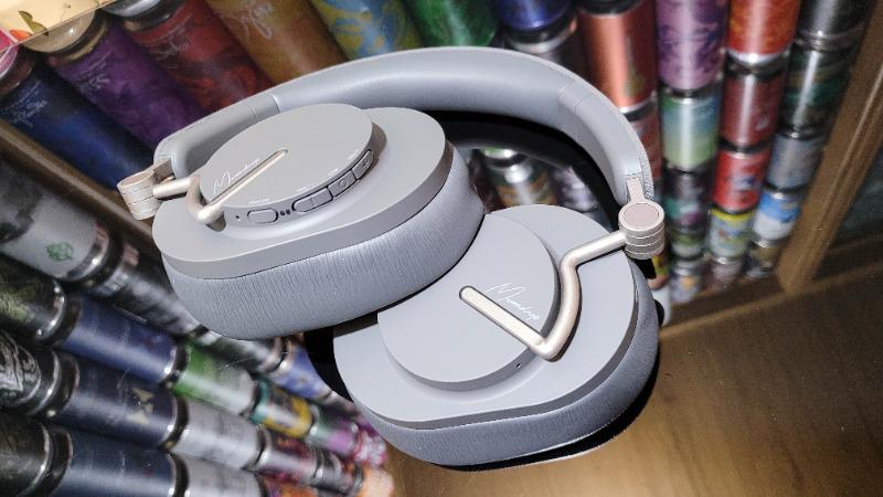 头梁还是使用织物材质设计,无压迫感,佩戴起来也很贴合舒适,长时间佩戴也不觉夹头,佩戴舒适度这方面水月雨还是比较靠谱的。机身侧面四个按键,切换模式的选择键可供降噪、透传模式和降噪关闭之间点选切换,其他三个则是开关机兼播放暂停键,以及音量增减按键,以方便你佩戴耳机却又不便操作手机时,实现简单的播放控制,音量这个对我来说还是蛮刚需,毕竟我骑车时不便掏手机。 配置部分有别于Singer的镀钛球顶振膜,Edge采用40mm超大尺寸的镀铍球顶柔性折环复合振膜,搭配CCAW音圈和N52钕磁铁的配置方案。在声音的调教方面,侧重点也不同,Edge更注重全面自然均衡的风格表现,而非与歌手联名所需的人声加强、情感渲染的风格选择。基于此,Edge的适合曲风也不拘泥于华语流行乐,算是更为杂食一些,甚至你拿它听听纯音乐或大编制交响也可。