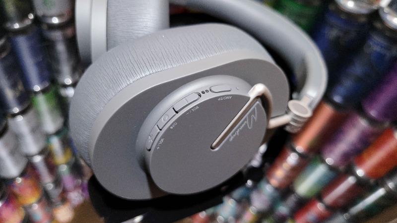 管理还是走个开箱流程,毕竟精心设计的封面手绘,好看的一批,撕膜开盒,封套纸还是一如既往的紧,抽出见本体,妥当固定安放,配件是Singer同款的皮质收纳袋和充电线。上手细细端详,乍看相似但实际还是有些区别,与Singer的类肤质涂层不同,Edge的主体部分采用磨砂烤漆工艺,看上去也是相当雅致。 头梁还是使用织物材质设计,无压迫感,佩戴起来也很贴合舒适,长时间佩戴也不觉夹头,佩戴舒适度这方面水月雨还是比较靠谱的。机身侧面四个按键,切换模式的选择键可供降噪、透传模式和降噪关闭之间点选切换,其他三个则是开关机兼播放暂停键,以及音量增减按键,以方便你佩戴耳机却又不便操作手机时,实现简单的播放控制,音量这个对我来说还是蛮刚需,毕竟我骑车时不便掏手机。