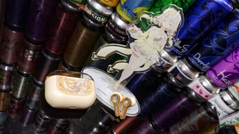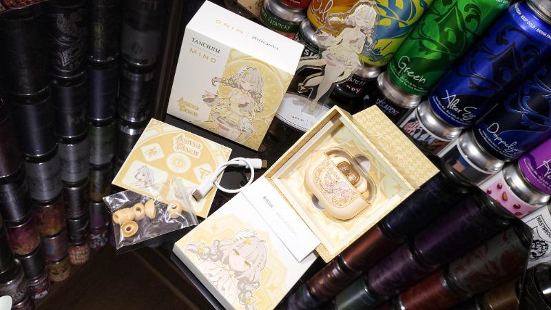 豪华套装里面除了之前就有的TANCHJIM本家特色的明信片之外,这次还多了星芒之羽主题徽章,首发还送星芒之羽主题立牌,明信片也是星芒之羽主题特别版的,还有限定贴纸和主题包装,相当过瘾,从里到外二刺猿浓度拉满了,深得我心,简简单单的开箱,简直一步一拍,碰到喜欢的东西大概是会激发拍照欲。 好看的包装和精美的本体印花,以及各类限定品附送之外,本身造型也是非常小巧,耳机佩戴也很舒适,长时间佩戴,确保牢靠的同时,并不会带来很大的压迫感,属于是小巧精致稳定型的,附带不同耳套和充电线,甚至还送了替换滤网。