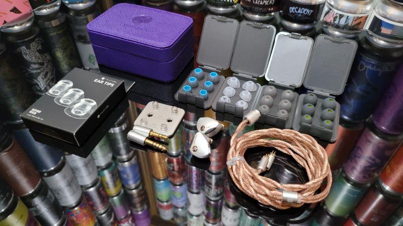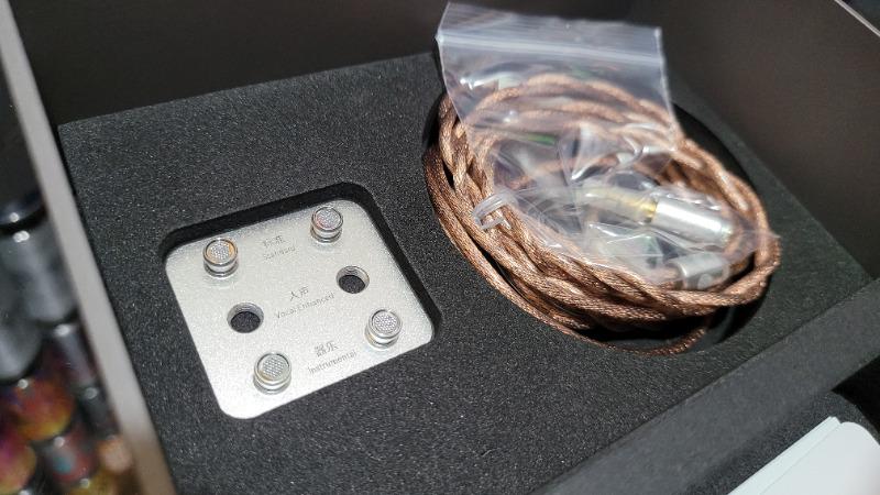 到手包装依旧如前,配件也还是维持了细节满满的优秀传统,标配耳套四种,外加另附的透明硅胶套,共计五种,可谓丰富,方形翻盖的耳套收纳盒,整齐摆放可以说是强迫症极度友好。耳机线的部分,依旧延续大碗料足的品牌精神,采用无氧铜、合金铜、银铜合金以及石墨烯铜等材质混编而成,这配料表一看就HiFi。