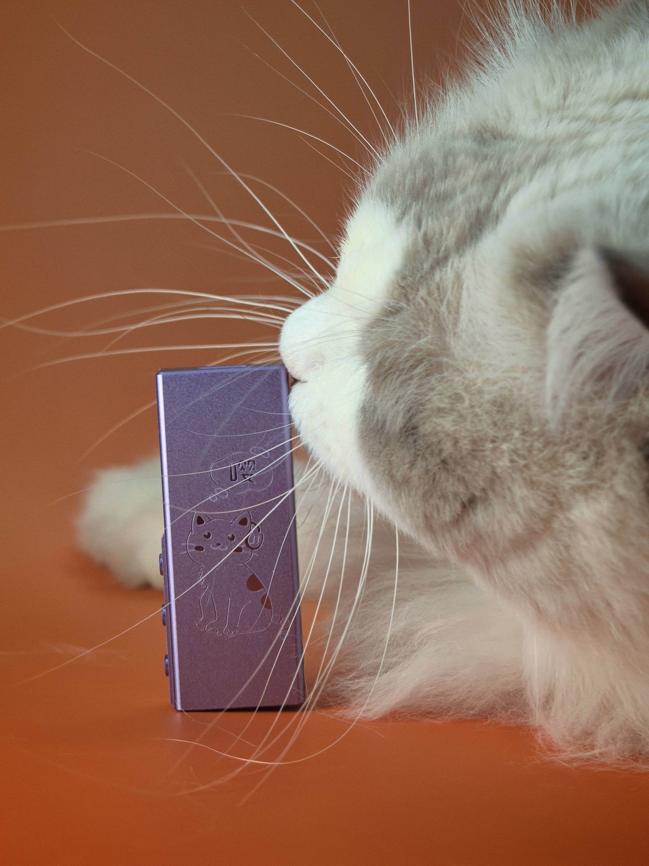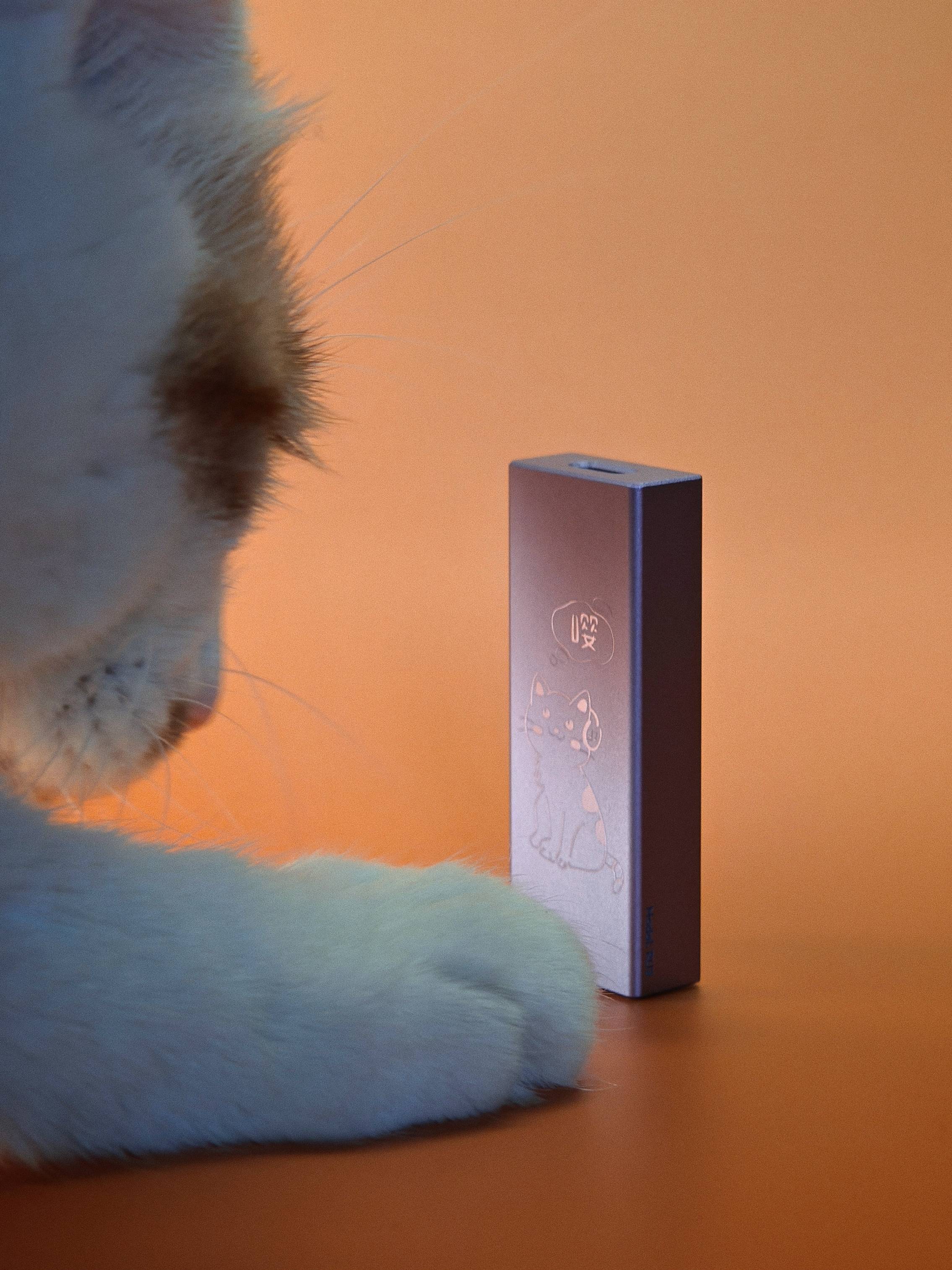 我手上这台紫色版背面刻着灵动的猫咪图案,随着光线角度变化若隐若现,这设计嘤嘤嘤的,我家猫咪也很喜欢。